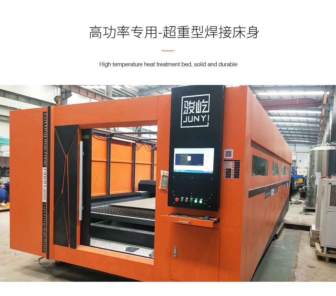 VF-60H(H即包圍式交換平臺)光纖激光切割機,是駿屹激光針對中厚板研發(fā)的一款重量級機型,此款機型可搭載3000瓦,4000瓦,6000瓦,8000瓦,12000瓦,15000瓦光纖激光器,機型全包圍以及半包圍可選,整機重量10噸,更加扎實穩(wěn)重,配備雙屏,監(jiān)控操機同步進行。